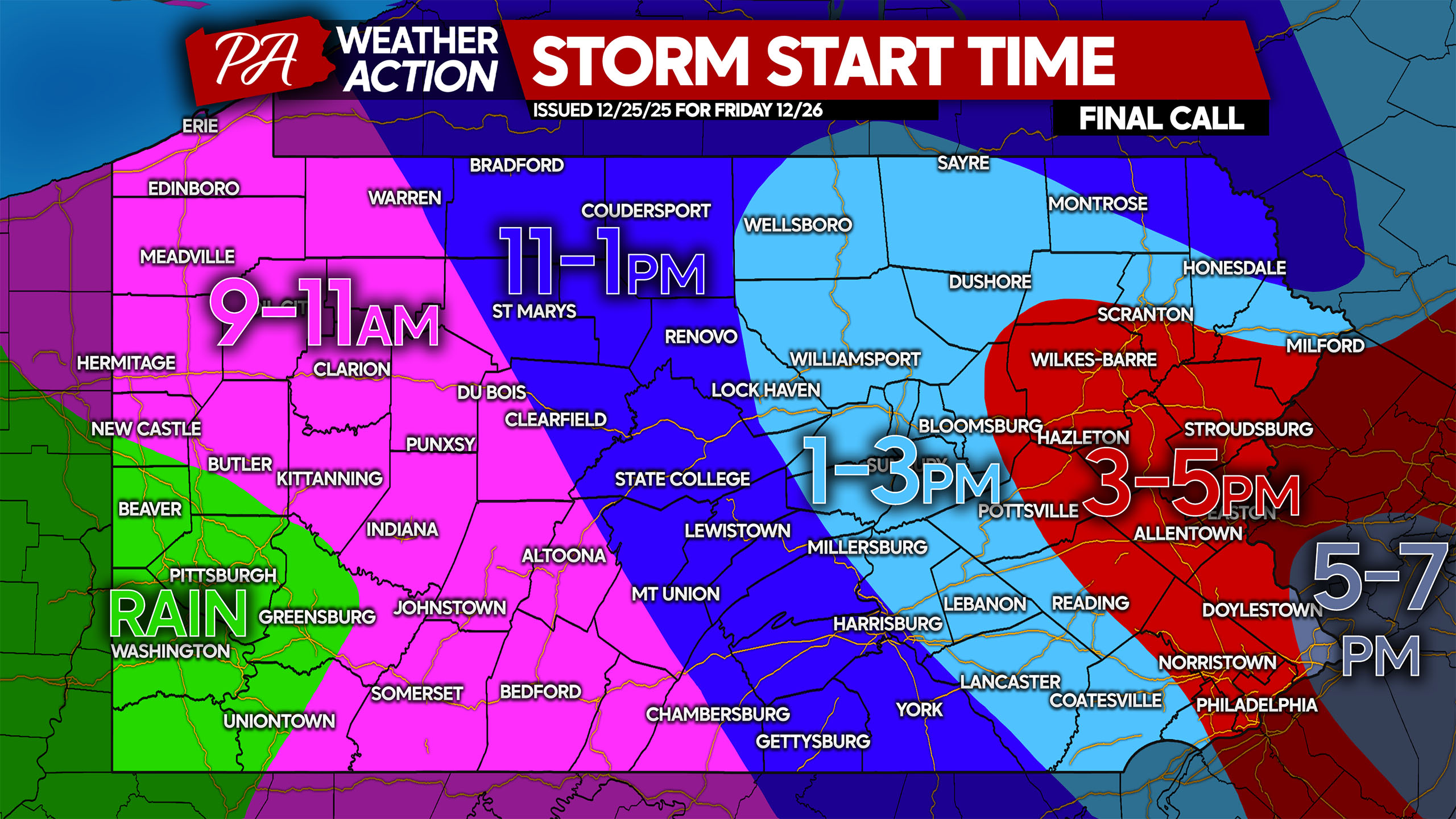 A mild and peaceful Christmas this year! But it really is the calm before the storm, with temperatures crashing this evening into early Friday morning. Central and Eastern Pennsylvania will wake up the temperatures in the teens and twenties Friday morning, just hours before the storm onset.