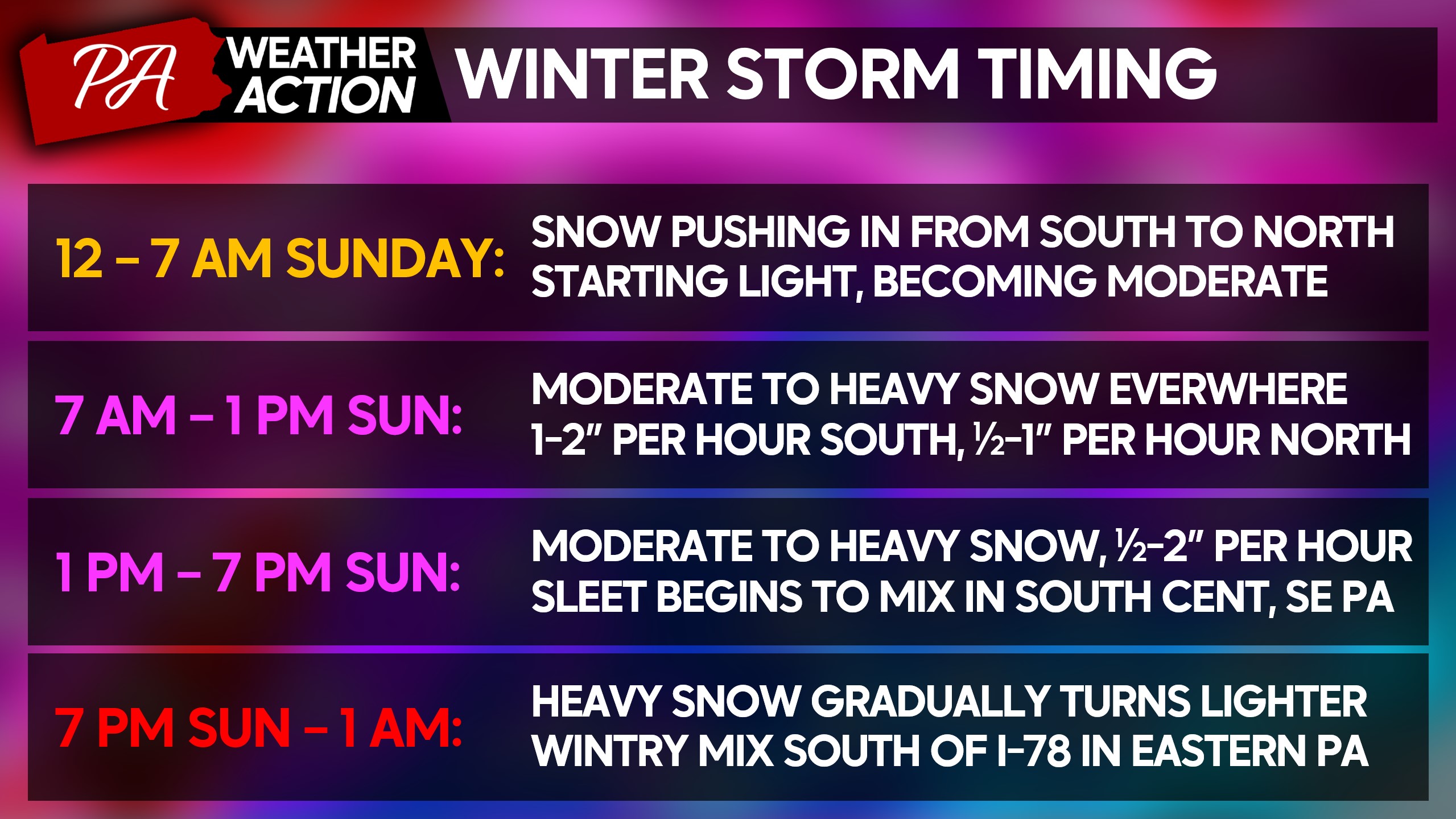 Local Winter Storm Timing Across PA