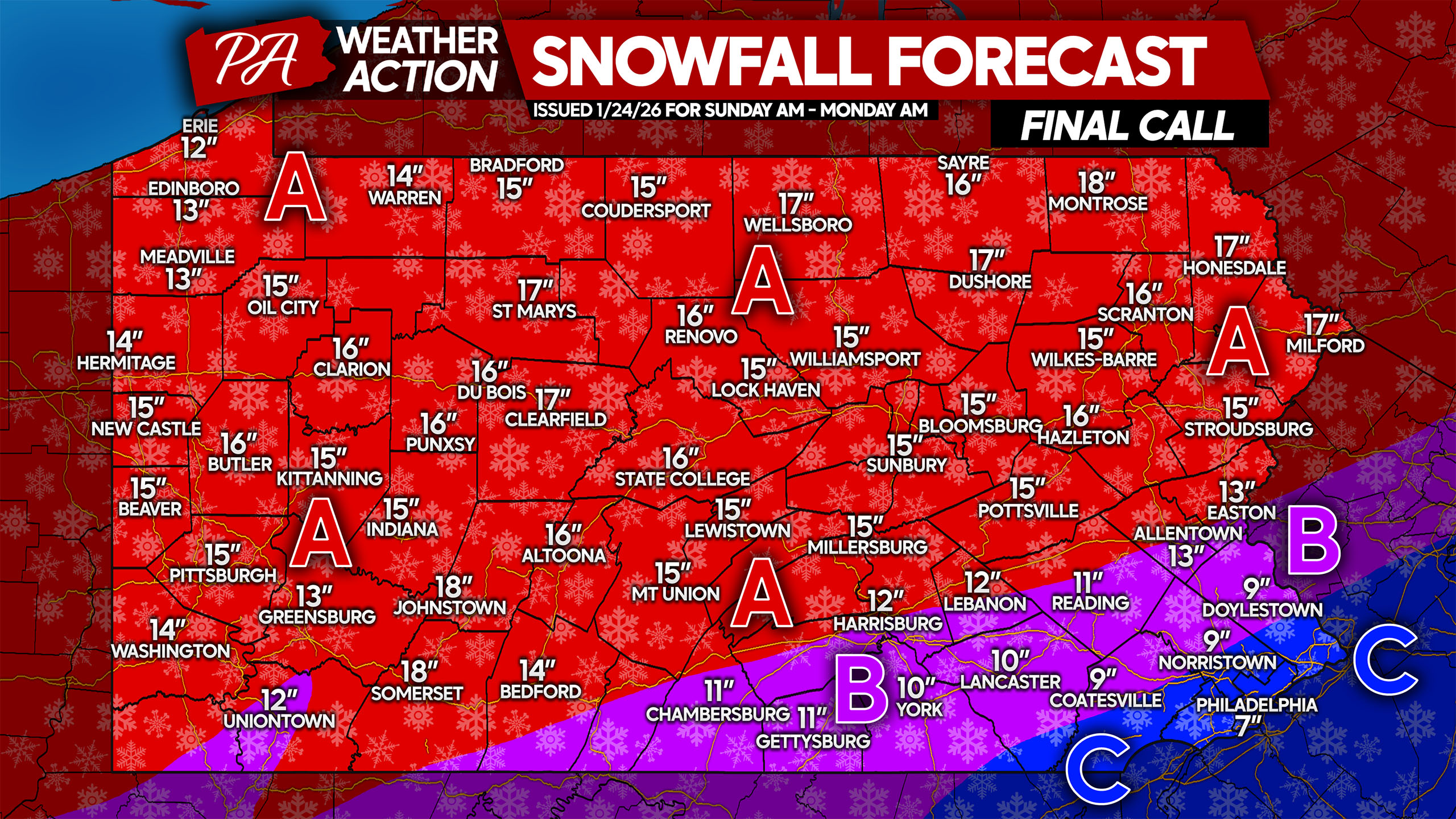 FINAL CALL SNOWFALL FORECAST FOR SUNDAY’S MAJOR STORM