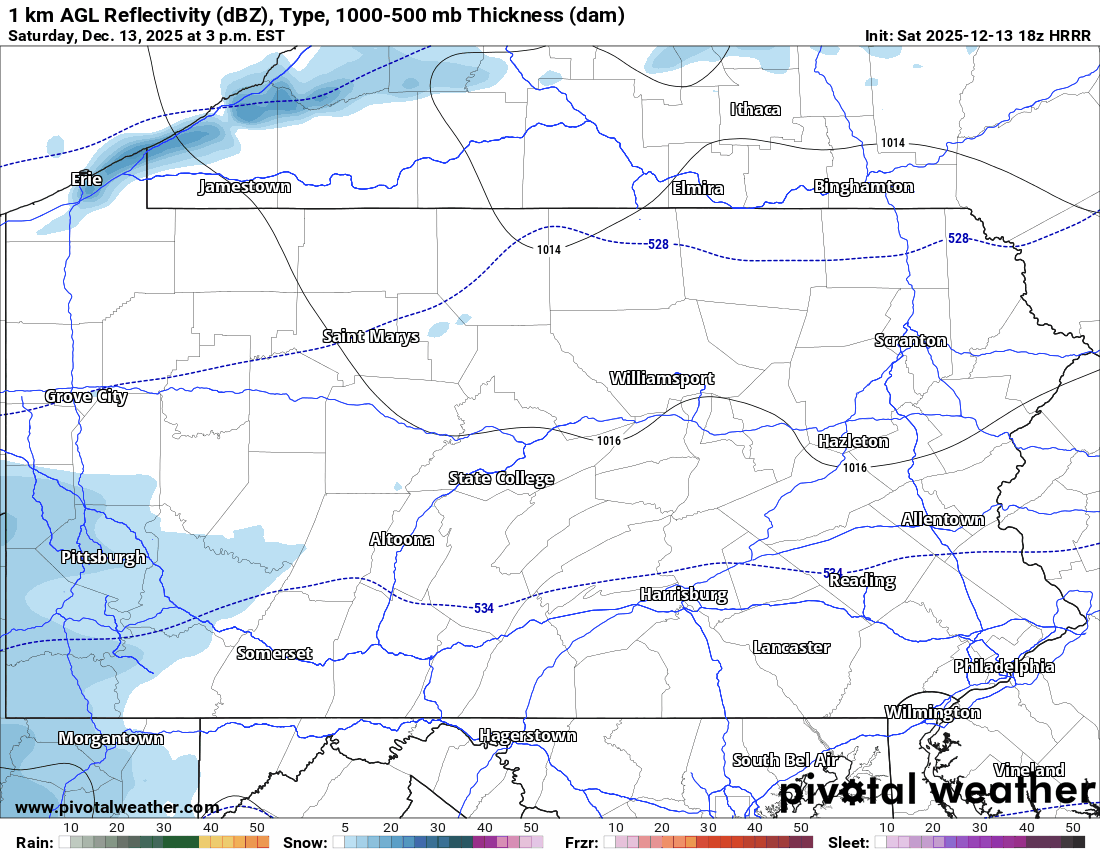 The rest of us will face deteriorating conditions this evening, especially in Western PA where snow is already starting as of the time this is being written. Below is the High Resolution Rapid Refresh (HRRR) model for the duration of this storm. The timestamp is in the top left.