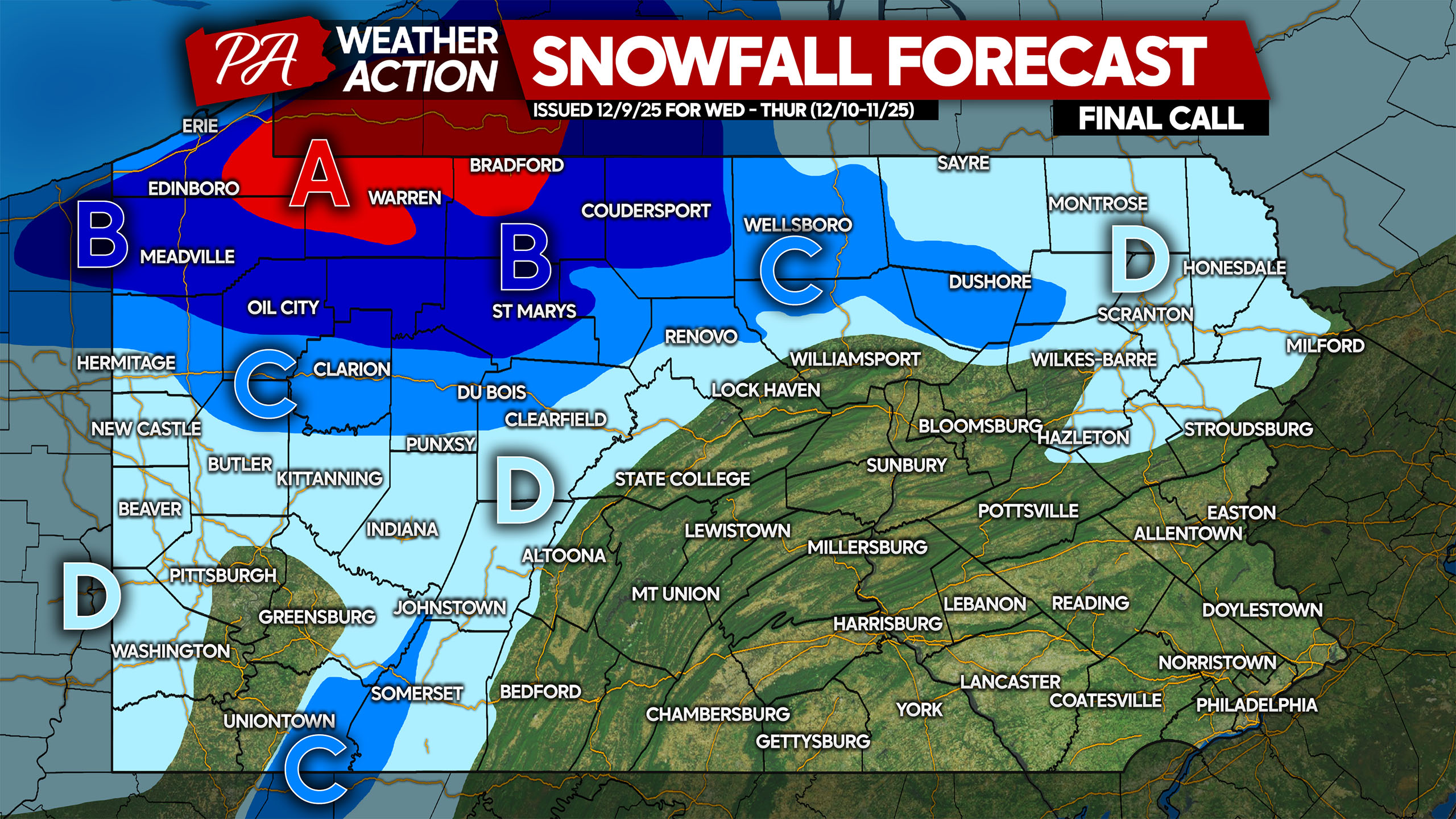 FINAL CALL SNOWFALL FORECAST FOR WEDNESDAY INTO THURSDAY IN PA