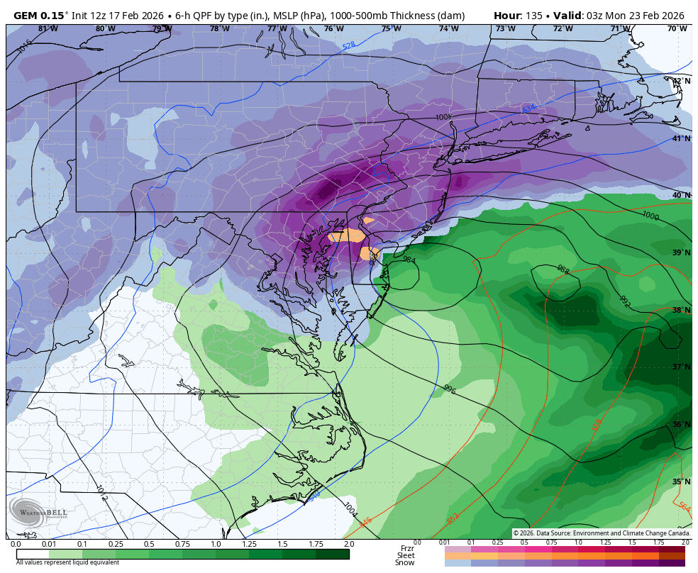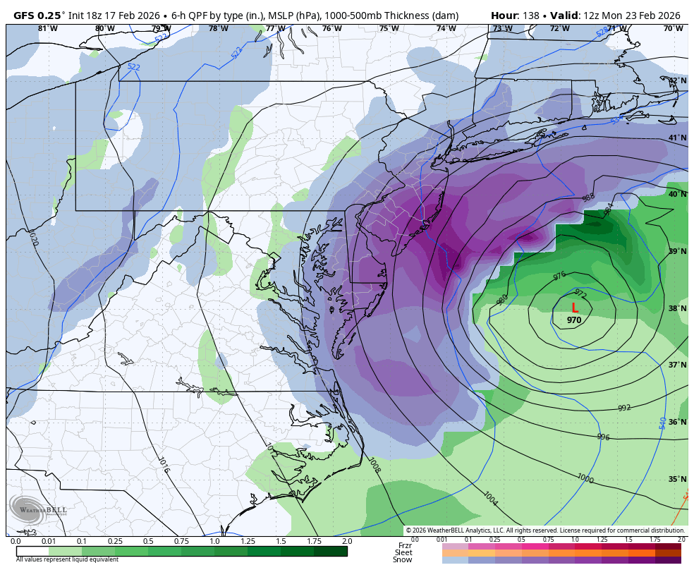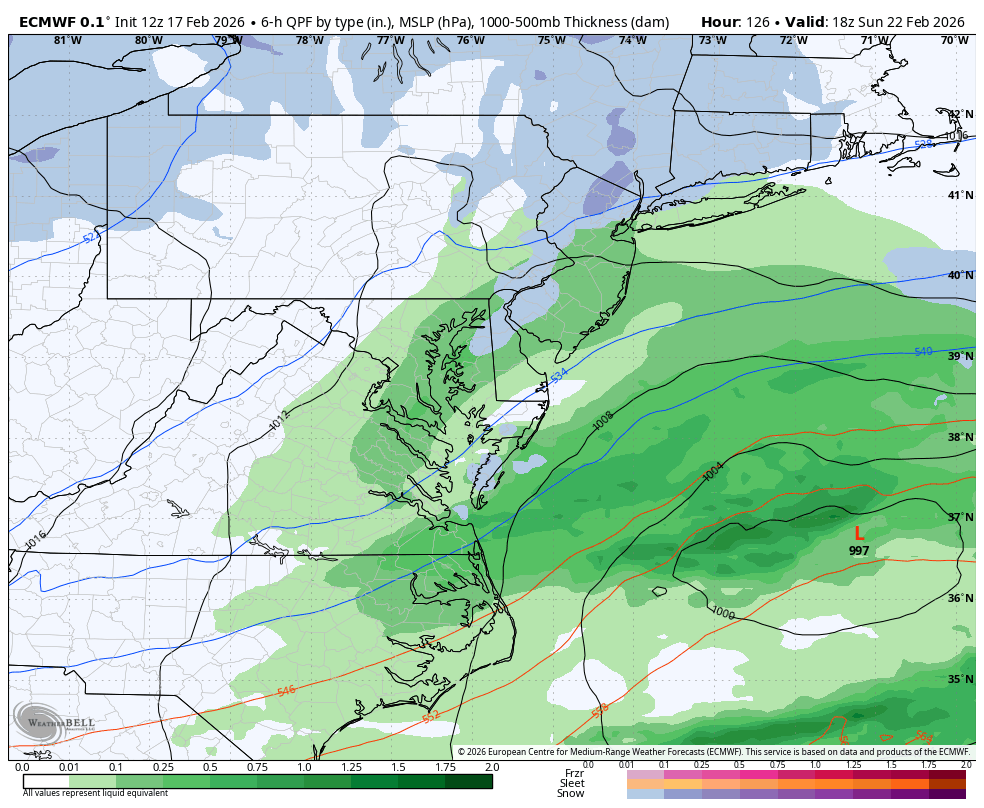 As we work our way down the ladder of impact to the American and German models, the “major blizzard” is now centered fairly far offshore with the coast taking the brunt of the storm.