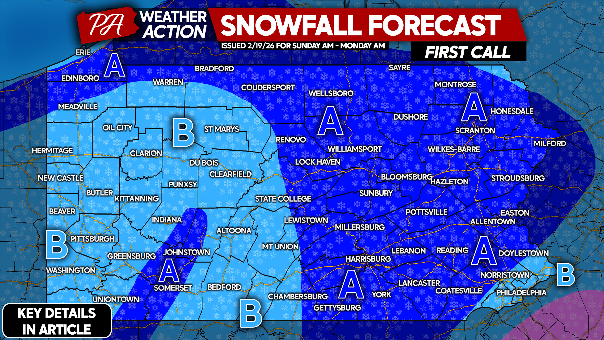 Scenarios for Sunday – Monday Snowstorm Potential + First Call Snowfall Forecast Thru Friday in Pennsylvania