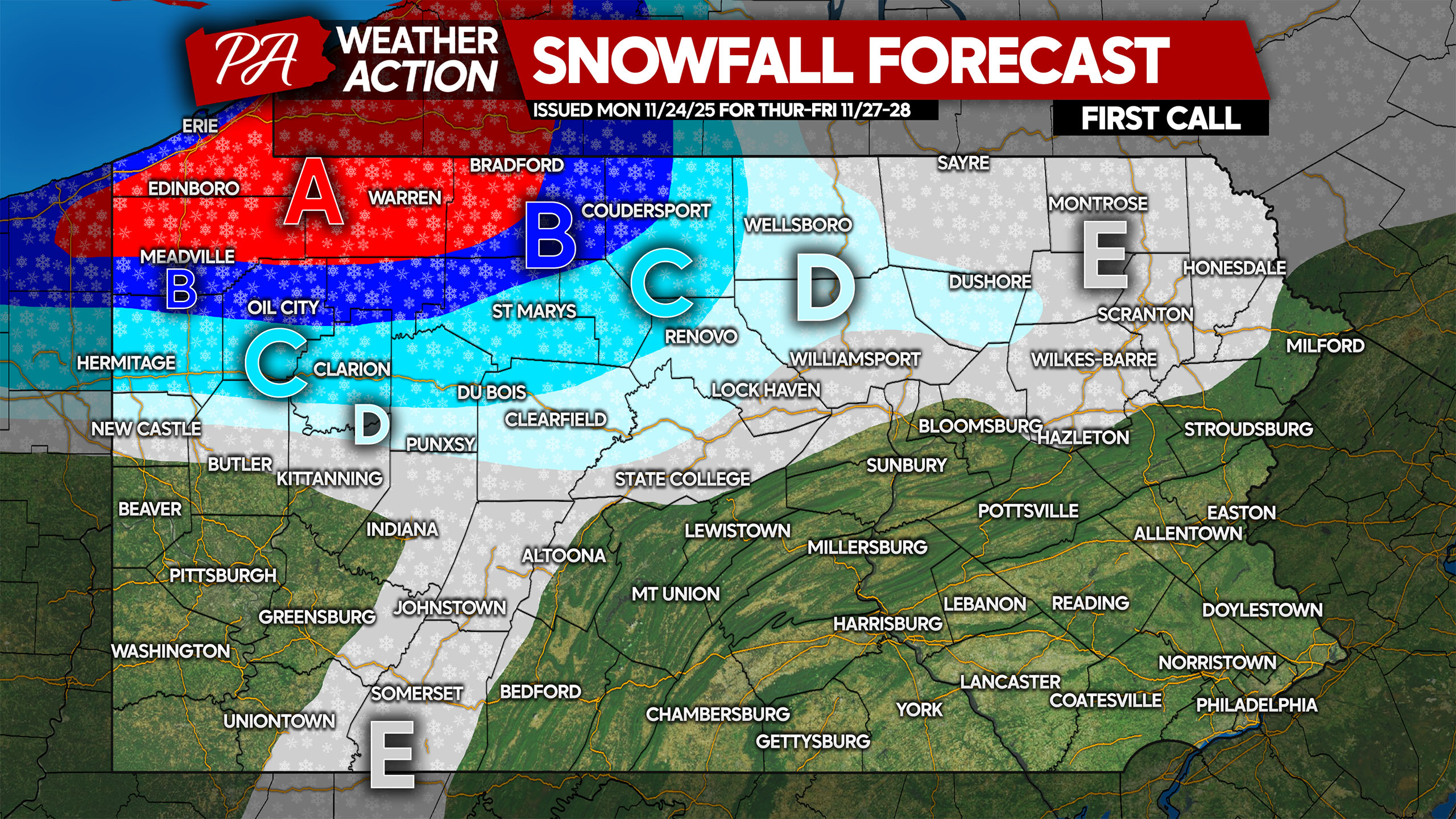 Latest model data has trended somewhat colder with this system in some areas. Everyone will start as snow, however areas in Southwest and Southeast PA…